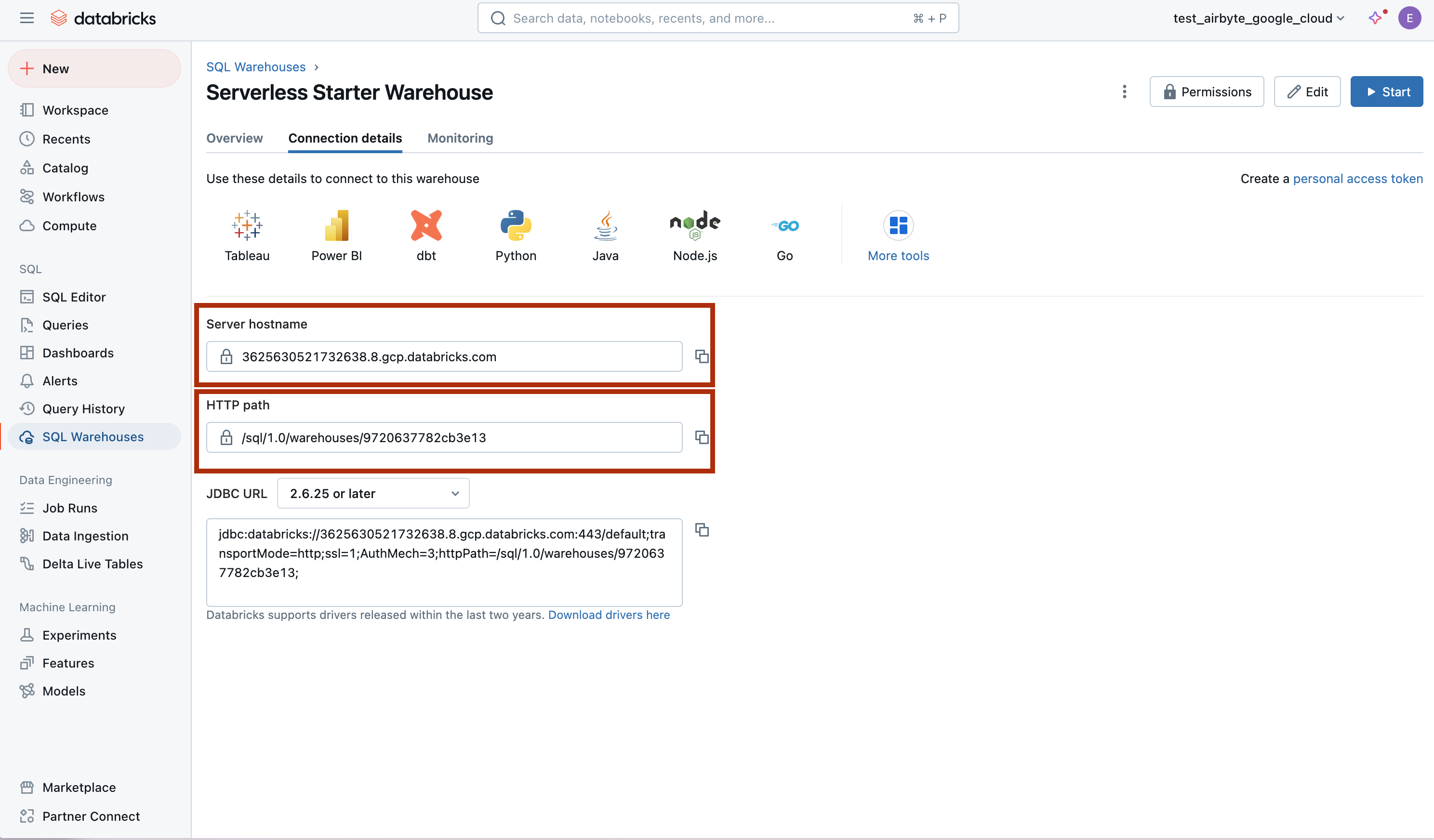 | 0.1.1 | 2021-10-05 | #6792 | Require users to accept Databricks JDBC Driver Terms & Conditions. |